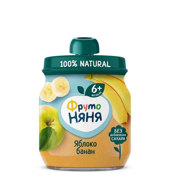 “FrutoNyanya” Apple & Banana Purée — a natural fruit purée for complementary feeding of babies from 6 months. Made from selected apples and bananas with no added sugar. An excellent choice for parents ordering baby food online with delivery in Dubai.