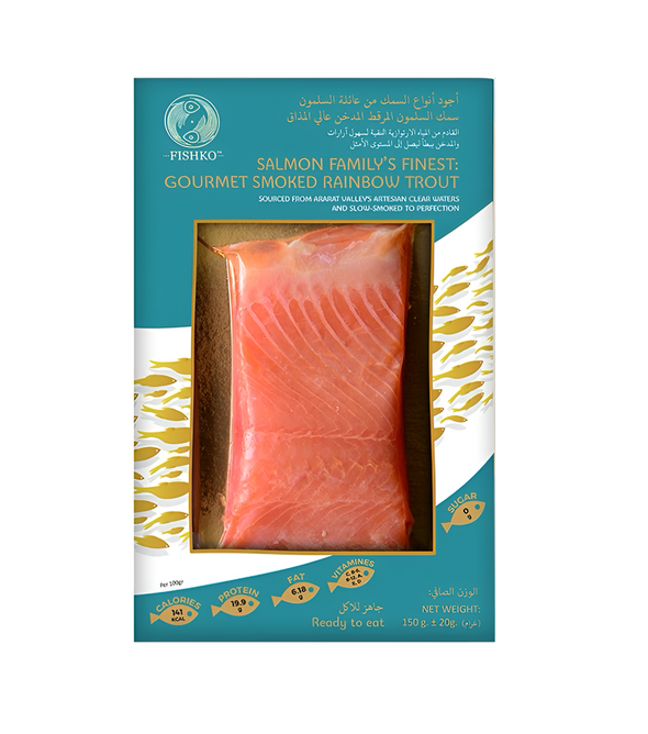 This delicious trout, sourced from the clear artesian waters of the Ararat Valley, is slowly smoked to perfection. Enjoy the exquisite taste of Salmon Family smoked trout, the perfect choice for gourmets.