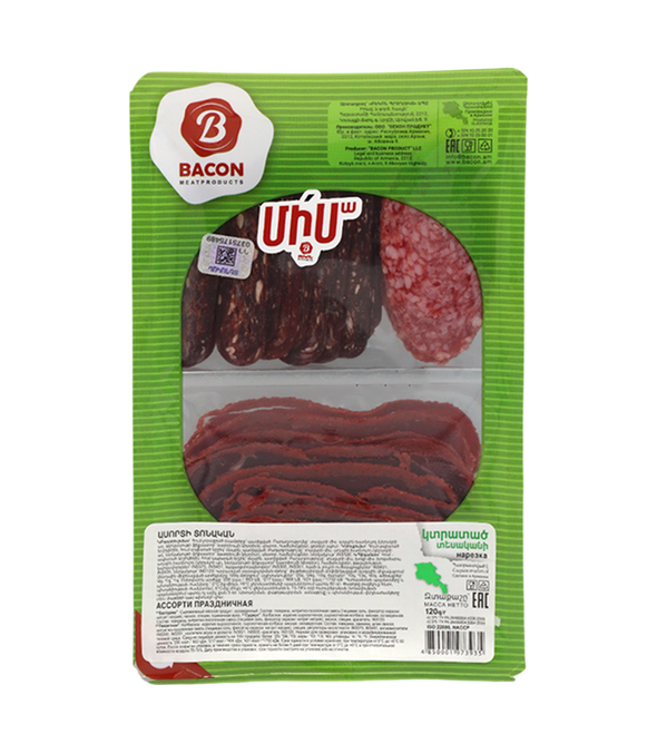 Traditional "Bekon" basturma — air-dried beef with a rich spice blend. Thinly sliced, it's perfect for sandwiches and meat platters.