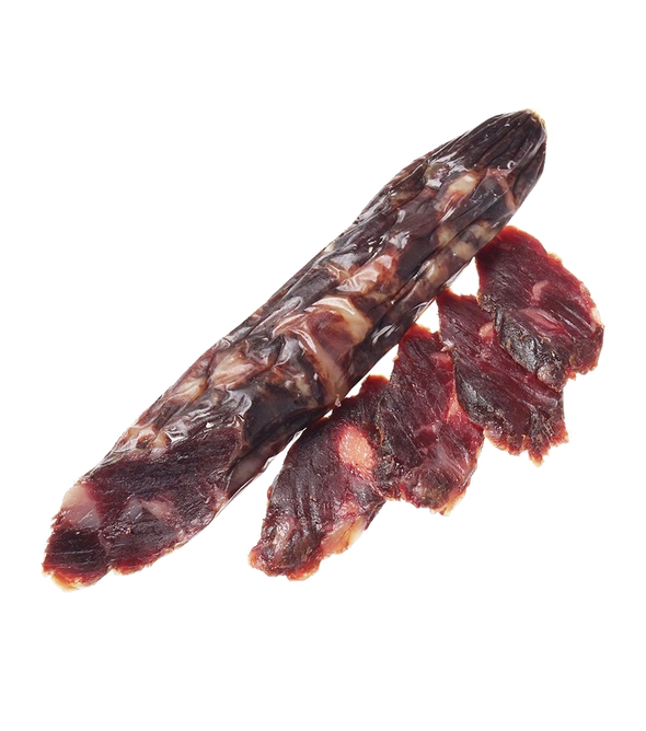 Dry-cured Horse Meat in Protein Casing — a natural halal meat delicacy with a clean horse meat flavor, garlic aroma, and a mild slightly sweet aftertaste.