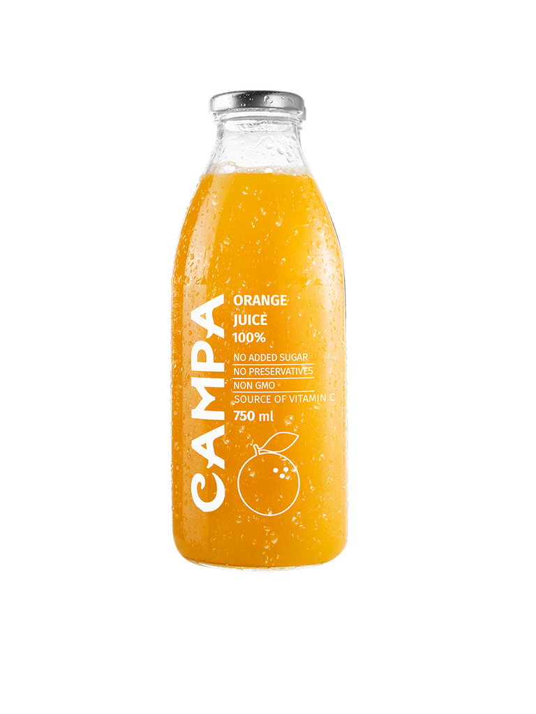 Campa juice is made from 100% orange juice from concentrate, preserving the natural flavor and freshness of the fruit. No added sugar, preservatives, or GMOs.