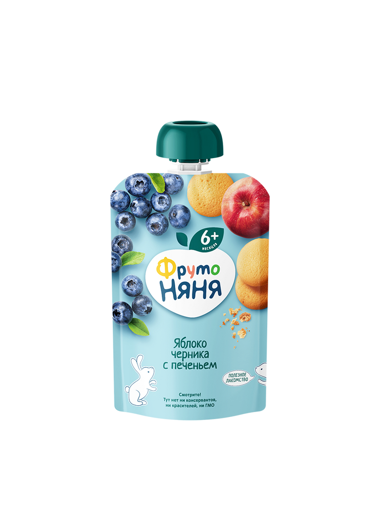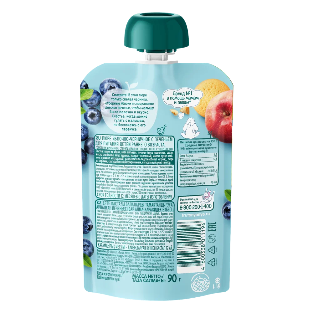 Apple purée, drinking water, biscuit (wheat flour, sugar, butter, chicken egg, malt extract, whole milk powder, corn starch, raising agent — sodium bicarbonate), blueberry purée, concentrated chokeberry juice, natural flavouring.
