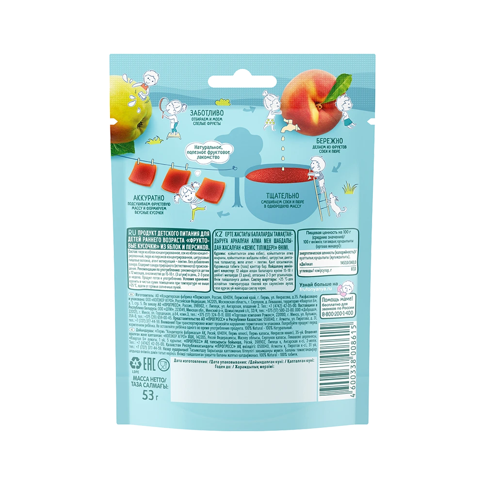 Only natural fruit juices and purées are used, with no added sugar. Each piece is individually wrapped to preserve freshness and ensure convenient use at home, on walks, or while travelling.