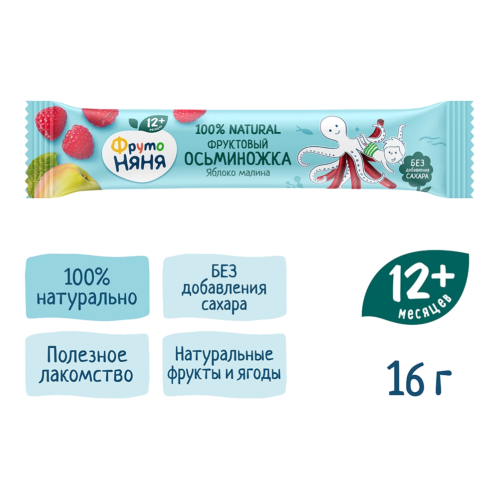 The FrutoNyanya fruit octopus is a wholesome treat specially created for toddlers aged 12 months and older. Its playful shape supports the development of fine motor skills and makes snack time fun and enjoyable.