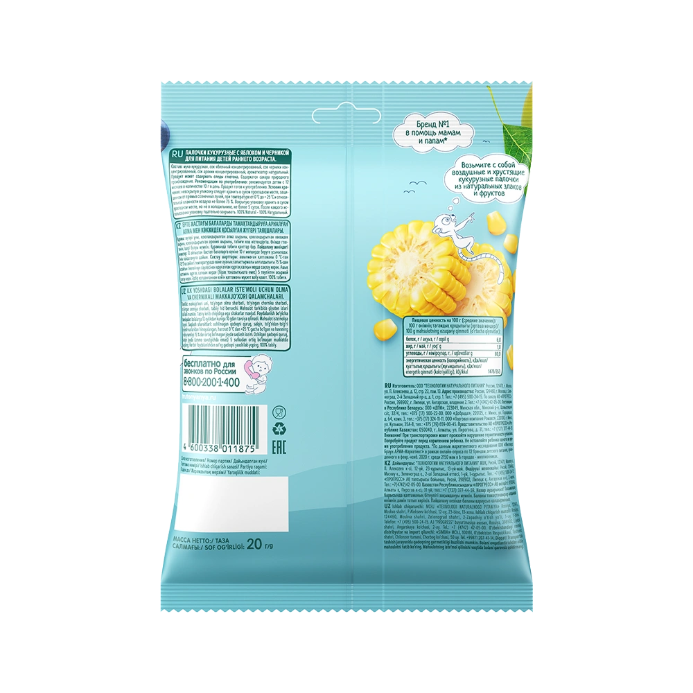 FrutoNyanya corn sticks with apple and blueberry are a tasty and wholesome snack for children aged 12 months and older. The combination of nourishing grains with natural fruit and berry juices creates a mild flavour well suited to a child’s diet.