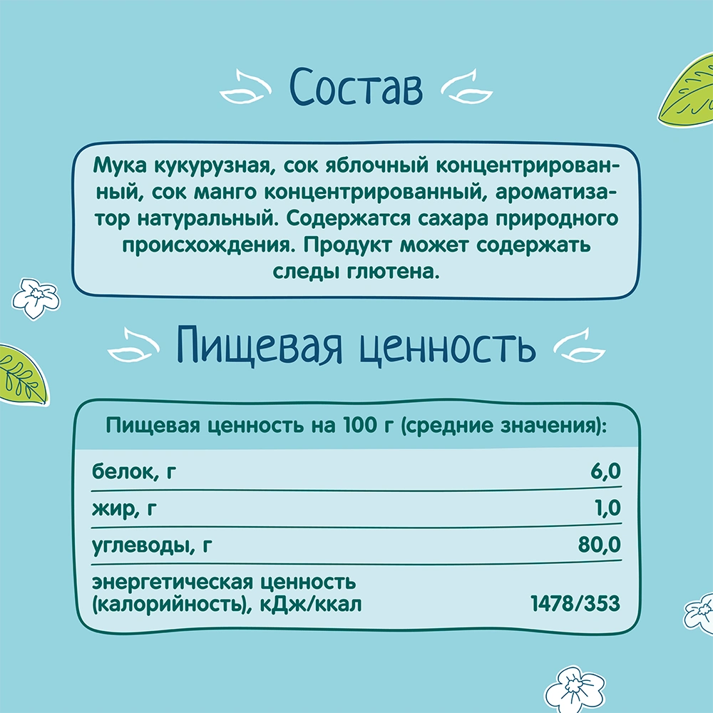 Corn flour, concentrated apple juice, concentrated mango juice, natural flavouring.