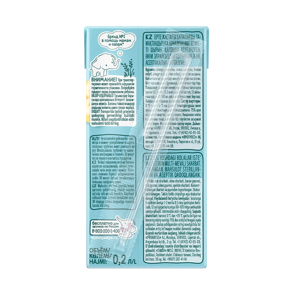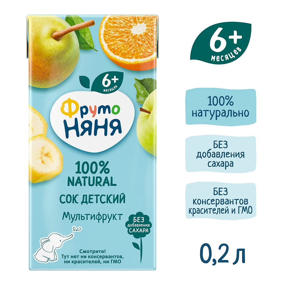 “FrutoNyanya” banana, apple, cherry, and raspberry nectar — a natural fruit and berry drink for children aged 3 years and older. The balanced taste of ripe fruits and berries makes it an excellent choice for daily consumption and a convenient option to purchase with delivery in Dubai.