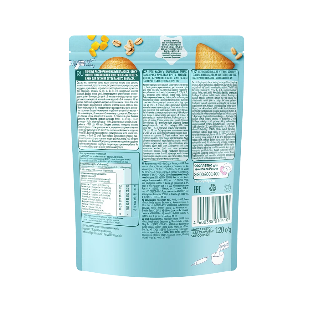 The recipe includes several types of grains along with a complex of vitamins and minerals that support balanced growth and development. The biscuits can be used in dissolved form for younger babies or as a standalone snack for older children.