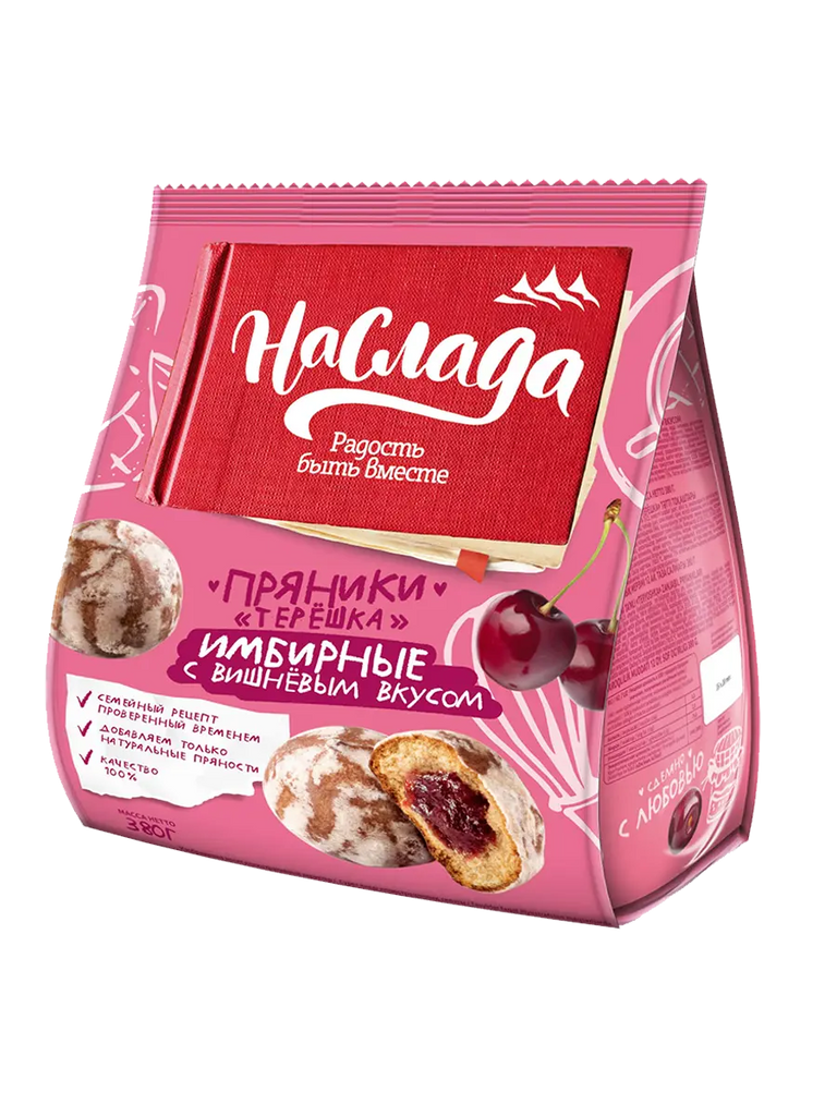 Представляем вам пряники "Терёшка имбирные с вишнёвым вкусом" от бренда "Наслада" - это истинное воплощение нежности и изысканности. Маленькие куполообразные пряники, приготовленные из имбирного теста, украшены великолепной вишнёвой начинкой.